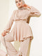 | Name | طقم تونيك كريب مطاطي بخصر محزم من قطعتين، بيج |