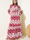 فستان كريب منقوش مطاطي مع حزام خصر - بورجوندي