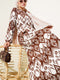 فستان كريب منقوش مطاطي مع حزام خصر، بني
