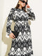 | Name | فستان كريب منقوش مطاطي مع حزام خصر أسود |