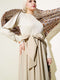 فستان مولانا المزين بحزام باللون البيج