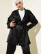 بدلة من قطعتين من الساتان المجعد بحزام باللون الأسود