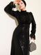 فستان سهرة أسود ذو حزام وتفاصيل من الترتر