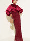 فستان سهرة بحزام مزين بالترتر باللون العنابي