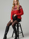 كنزة صوفية حمراء محبوكة بنقوش أمامية
