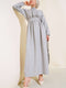 | Name | فستان كتان أمامي مكشكش باللون الرمادي |