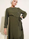 فستان مربوط مع تفاصيل عين الطائر الحجرية باللون الكاكي
