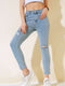 بنطلون دنيم ليزر بأرجل عالية وخصر نحيف باللون الأزرق الفاتح