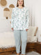 Ensemble de pyjama grande taille à côtes avec fleurs, vert pistache