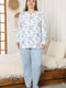 Ensemble de pyjama grande taille à côtes avec fleurs bleu