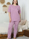 Ensemble pyjama grande taille à manches courtes brodé de fleurs magenta