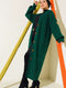 Gilet long en maille panier boutonnée vert émeraude