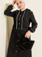 Robe en jean anthracite à capuche et boutons métalliques sur le devant