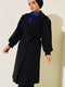 Manteau en cachemire noir à boutons de manchette et manches ballon