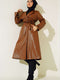 Trench-coat en cuir à ceinture et bouton unique, couleur beige