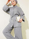 NameCostume deux pièces gris à double poche et ceinture à nouer