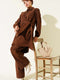 Ensemble deux pièces en velours côtelé à nouer sur le côté, couleur café