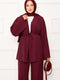 Ensemble deux pièces kimono avec ceinture et tunnel à la taille bordeaux