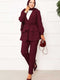 NameCostume deux pièces bordeaux avec volants et détails volantés sur la jupe