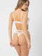 Ensemble de lingerie fantaisie 3 pièces en satin et dentelle écru, avec porte-jarretelles