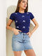 Haut court à manches courtes orné d'un ruban bleu marine