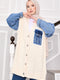 Cardigan en tricot de cheveux avec détails en pierre et garniture en denim écru