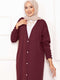 | Name | Cardigan long en maille avec boutons en perles, bordeaux |