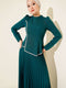 | Name | Ensemble deux pièces vert émeraude à jupe plissée et détails en pierre |