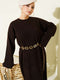 Robe en maille marron à col rond et taille nouée