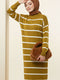 NameRobe en maille à col roulé rayée horizontale vert olive
