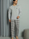 Ensemble pyjama homme à carreaux gris à manches longues et boutons