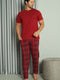 Ensemble pyjama homme bordeaux à carreaux, manches courtes et trois boutons
