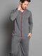 Ensemble pyjama homme à manches longues et boutons, couleur bordeaux fumé