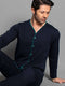Ensemble pyjama homme à manches longues et boutons, bleu marine et vert