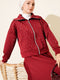 Ensemble deux pièces de plongée bordeaux orné d'une rangée de pierres et d'une jupe.