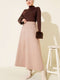 | Name | Jupe évasée en daim beige, taille élastiquée. |