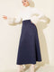 Jupe évasée en daim bleu marine, taille élastiquée.