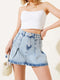 Jupe en jean plissée mini bleu glacier