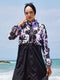 Maillot de bain modeste à motif floral avec taille plissée, lilas