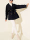 Trench-coat en denim bleu marine avec épaulettes et ceinture