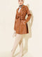 NameTrench-coat court en cuir beige à double boutonnage et ceinture.