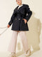 | Name | Trench-coat court bleu marine à quatre boutons avec cape |