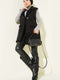 Gilet en daim noir, doublé de fourrure et doté de poches.