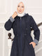 Trench-coat long à capuche et taille ajustable, bleu marine