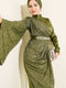 Bel Taşlı Pul Payet Detaylı Abiye Elbise Haki