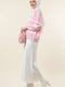Yatay Çizgi Detaylı Kısa Triko Kazak Pembe