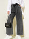 Beli Lastikli Kuşaklı Kot Pantolon Füme