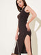 Fitilli Kolsuz Yırtmaçlı Midi Elbise Kahve