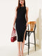 Fitilli Kolsuz Yırtmaçlı Midi Elbise Siyah