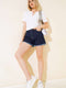 Pileli Paça Püsküllü Kot Şort Koyu Mavi